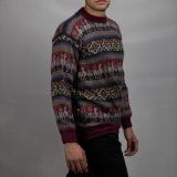 Wonderful colorful sweater. It is a bit long on me (M) a 5’7″ man, going past my butt, but otherwise fits perfectly.